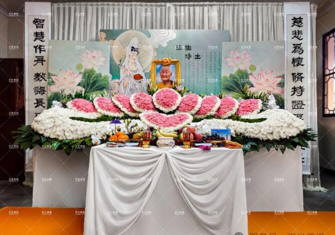 灵堂上的九品莲花象征老法师的来世今生。