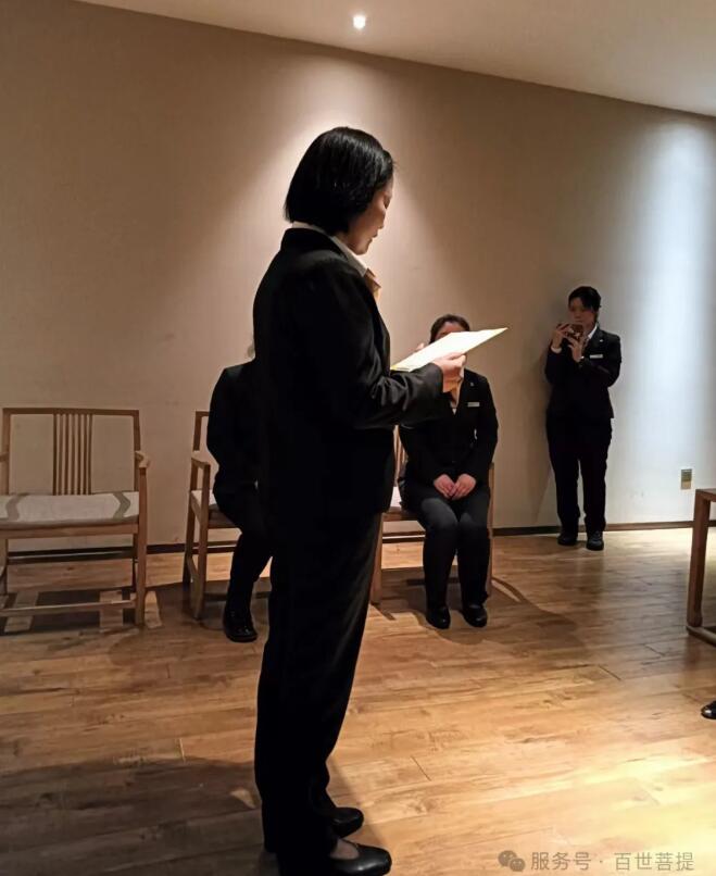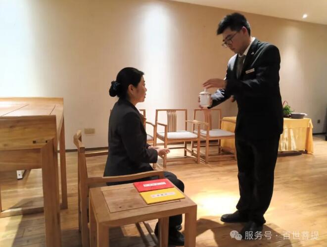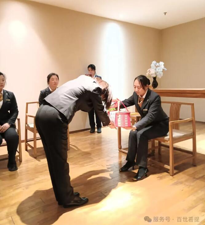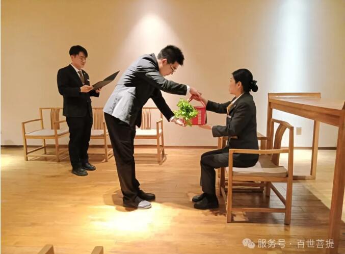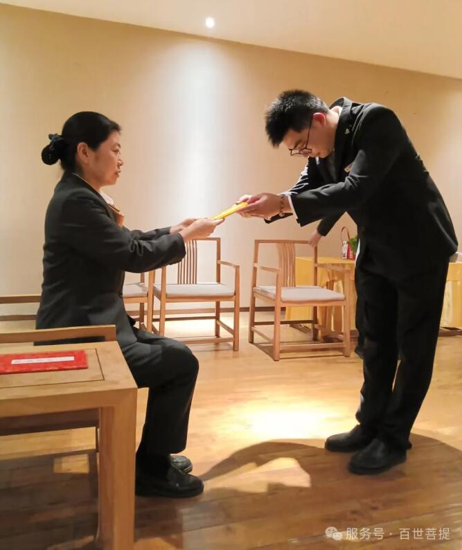 2025年4月30日下午,百世菩提为两位刚入职的新人举行拜师礼。殡葬行业深似海,这片承载生命尊严与人文温度的领域,既是对千年传统的敬畏传承,也是对时代需求的创新探索。传统丧葬礼仪、民俗文化凝聚着对逝者的尊重与追念,每一项仪式细节、每一套流程规范,都承载着生者的情感寄托。这些跨越时空的文化瑰宝,需要师徒之间口传心授、躬身示范,让烧纸焚香的讲究、挽联称呼的学问、悼词撰写的深意,在岁月流转中得以延续。 同时,随着社会观念的革新与技术的进步,殡葬行业也需要开拓创造。年轻一代在师傅的带领下,既要学习传统技艺的精髓,也要将现代科技与人文关怀相融合——从哀伤抚慰的心理疏导,到殡葬服务的流程优化。师徒相传不仅是技艺的接力,更是理念的交融。老员工的经验与年轻人的创意碰撞,方能让殡葬服务既有文化厚度,又有时代温度,让这一特殊行业在传承与创新中,始终守护生命最后的尊严。
