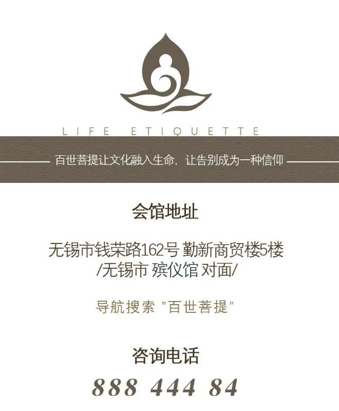 无锡市百世菩提礼仪服务有限公司2019-2020 版权所有违者必究 官网:http://www.bsptfw.cn 网址:www.bsptfw.com 地址:无锡滨湖区钱荣路162号勤新商贸楼5楼